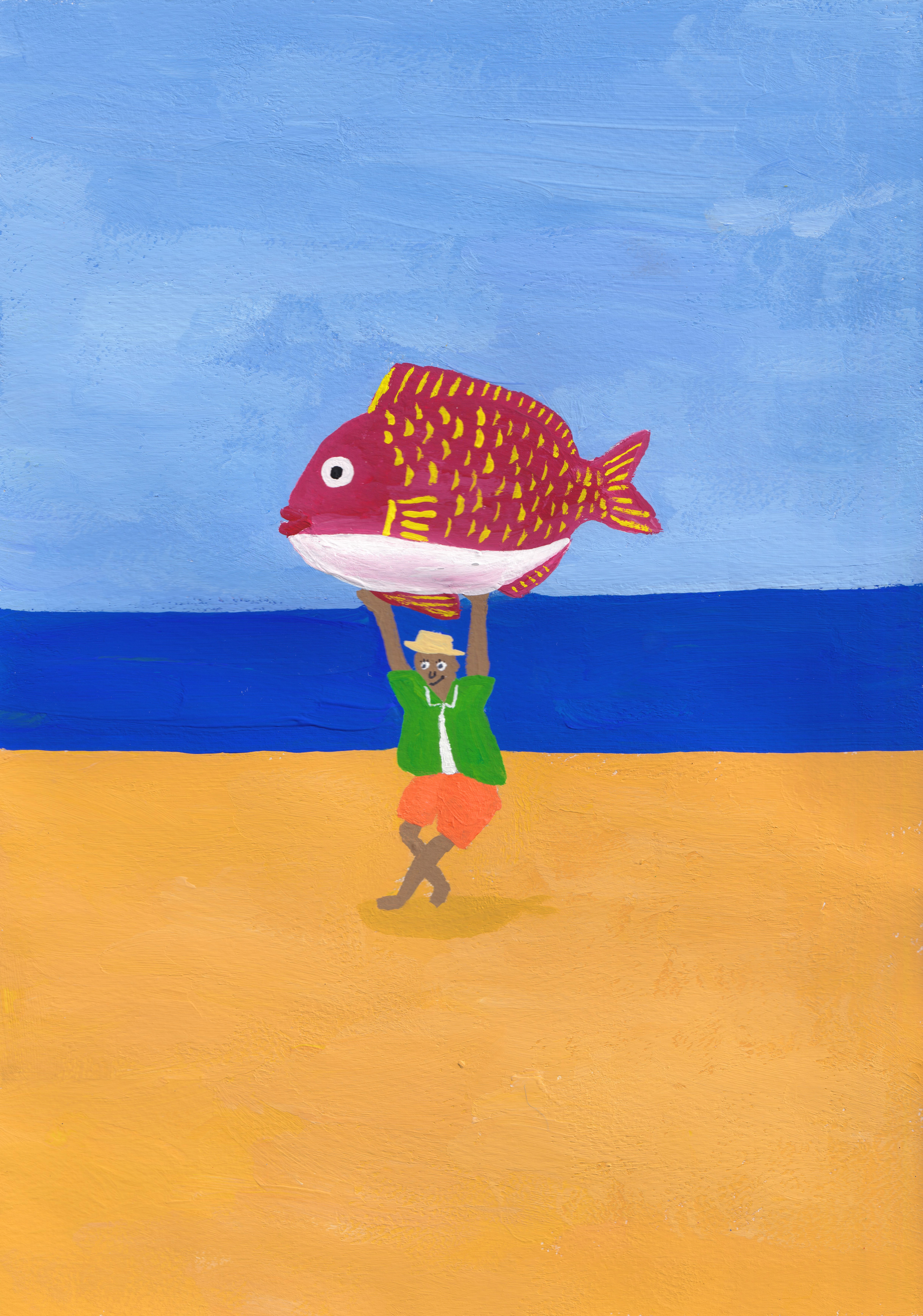 Acrylic Gouache / 2025 /「今日も鯛漁」